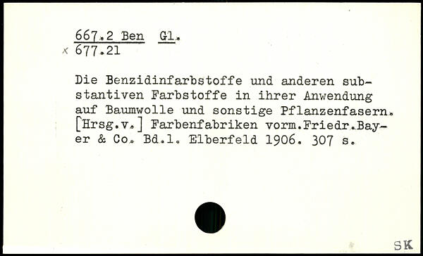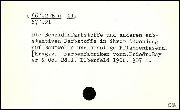 Die Benzidinfarbstoffe und anderen substantiven Farbstoffe in ihrer Anwendung auf Baumwolle und sonstige Pflanzenfasern, [Hrsg.v.] Farbenfabriken vorm.Friedr,Bayer & Co, Bd.l. Elberfeld 1906.