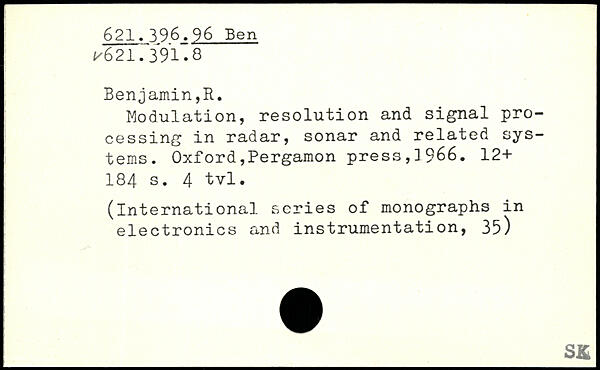 Modulation, resolution and signal processing in radar, sonar and related systems.