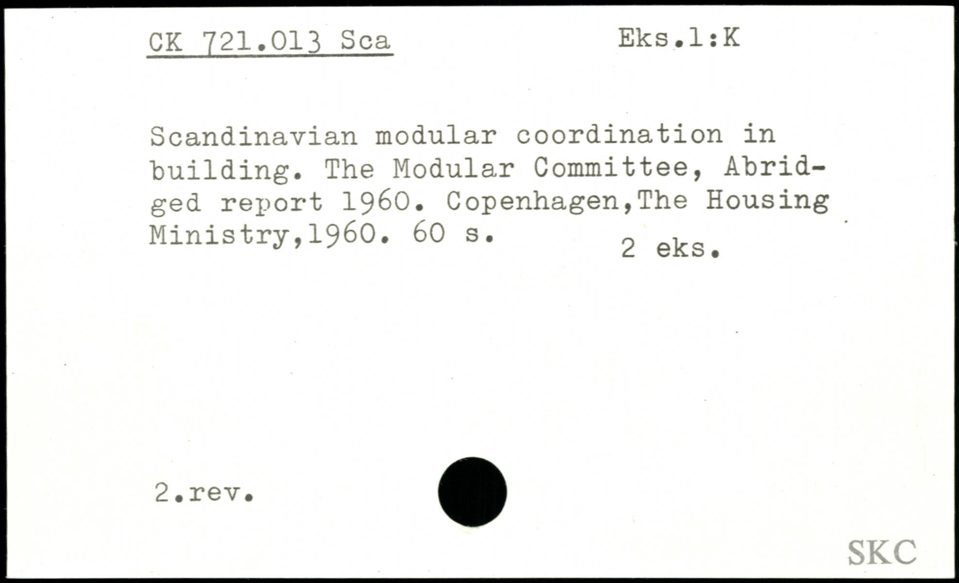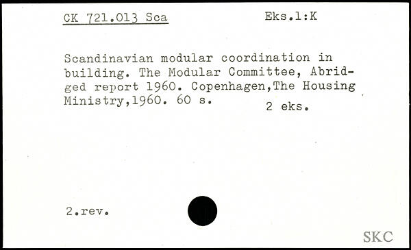 Scandinavian modular coordination in building. The Modular Committee, Abridged report 1960