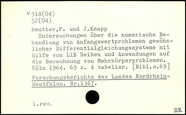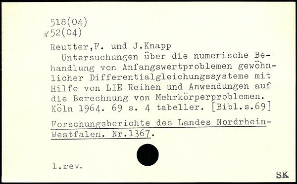 Untersuchungen über die numerische Behandlung von Anfangswertproblemen gewöhnlicher Differentialgleichungssysteme mit Hilfe von LIE Reihen und Anwendungen auf die Berechnung von Mehrkörperproblemen.