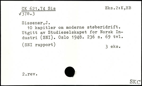 10 kapitler om moderne støberidrift. Utgitt av Studieselskapet for Norsk In-dustri (SNi). Oslo 1948-