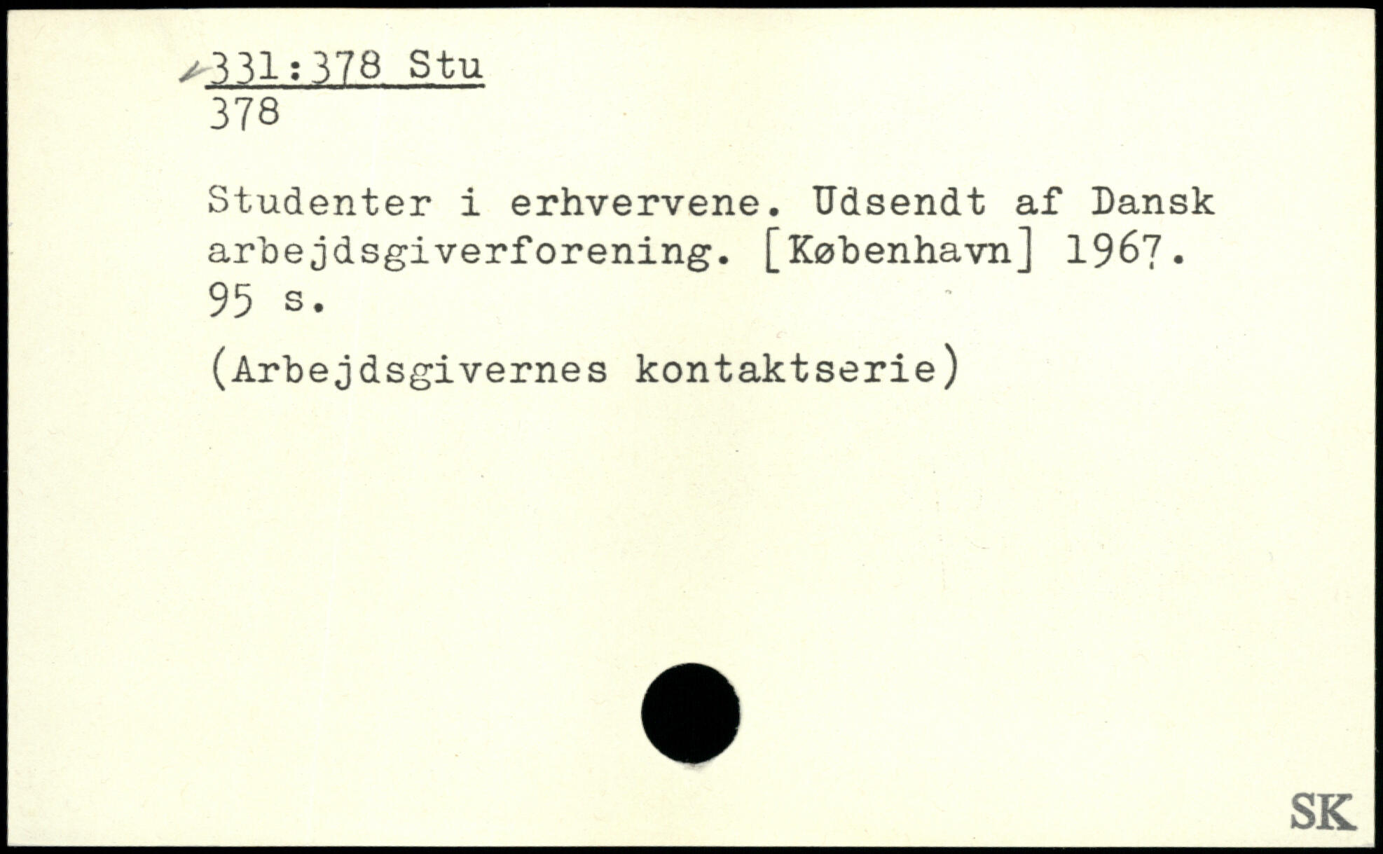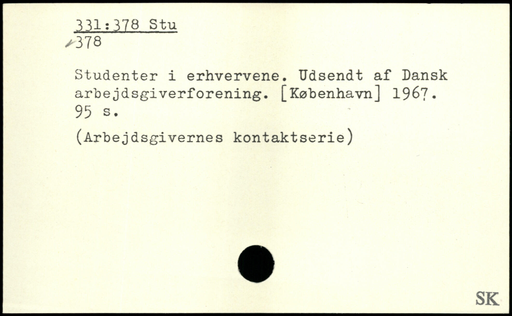 Studenter i erhvervene. Udsendt af Dansk arbejdsgiverforening.
