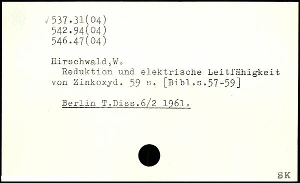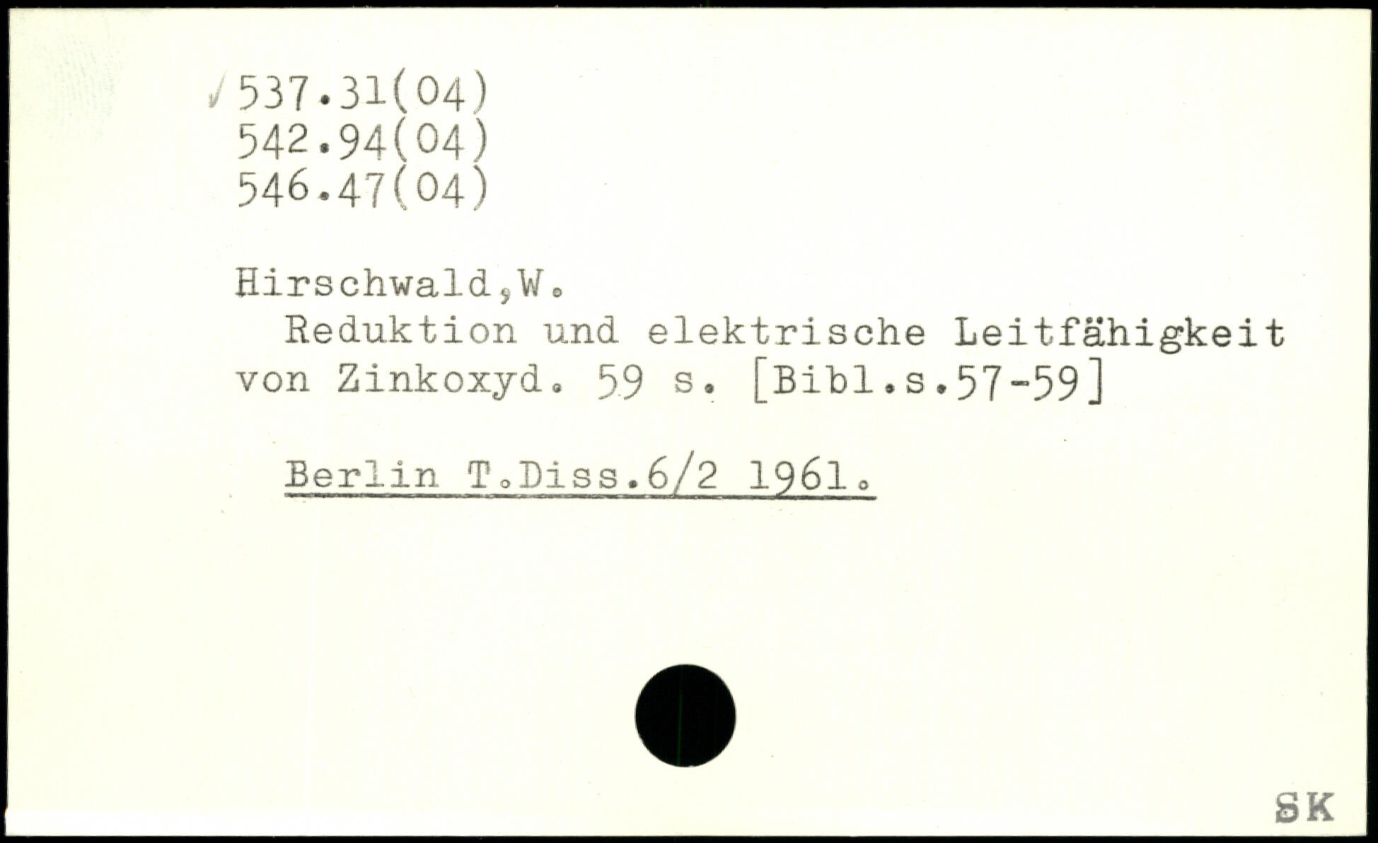 Hirschwald sWe Reduktion und elektrische Leitfähigkeit von Zinkoxyda