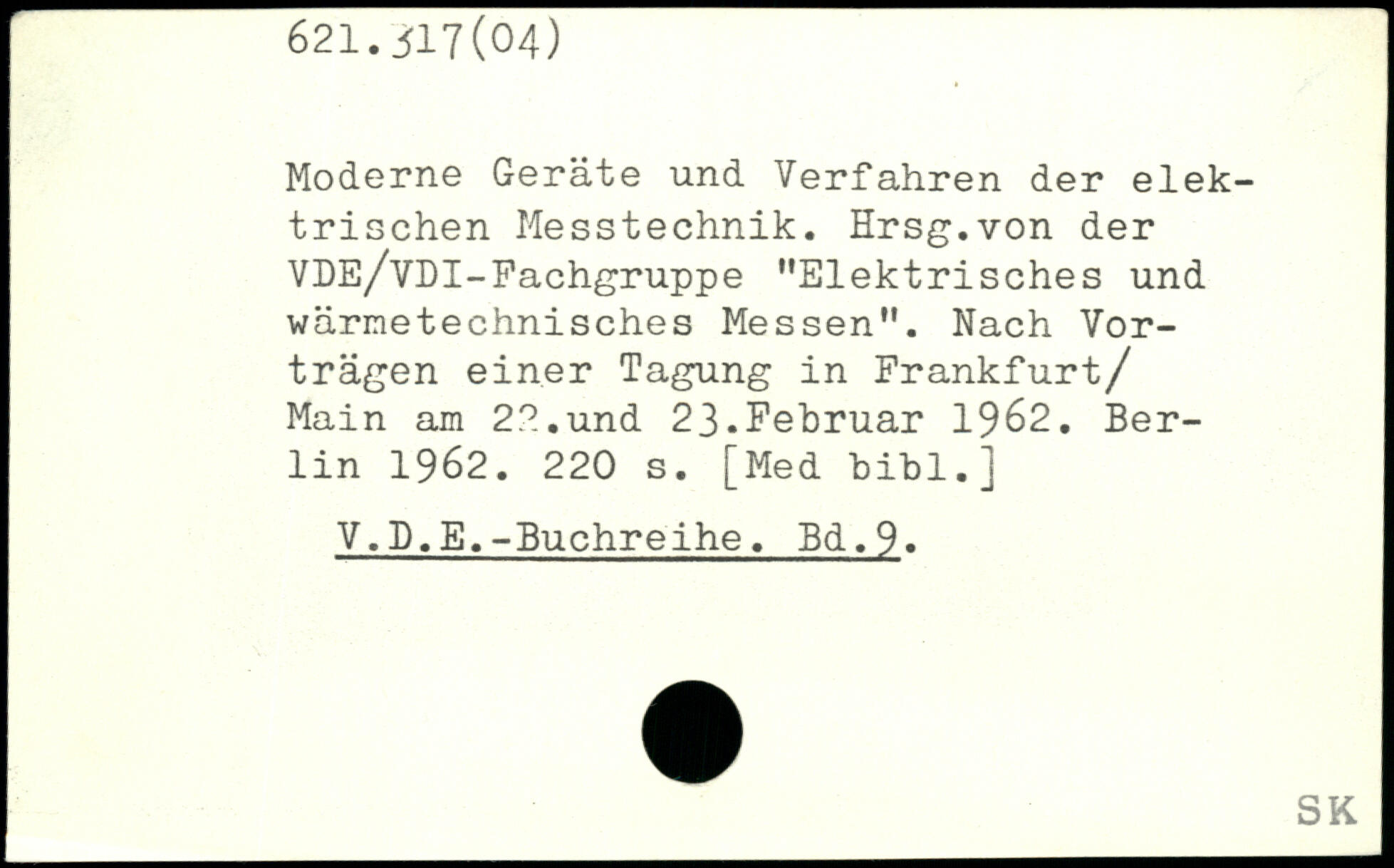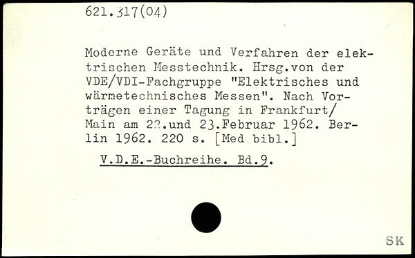 Moderne Geräte und Verfahren der elektrischen Messtechnik. Hrsg.von der VDE/VDI-Fachgruppe "Elektrisches und wärnetechnisches Messen". Nach Vorträgen einer Tagung in Frankfurt/ Main am 2?.,und 23.Februar 1962.
