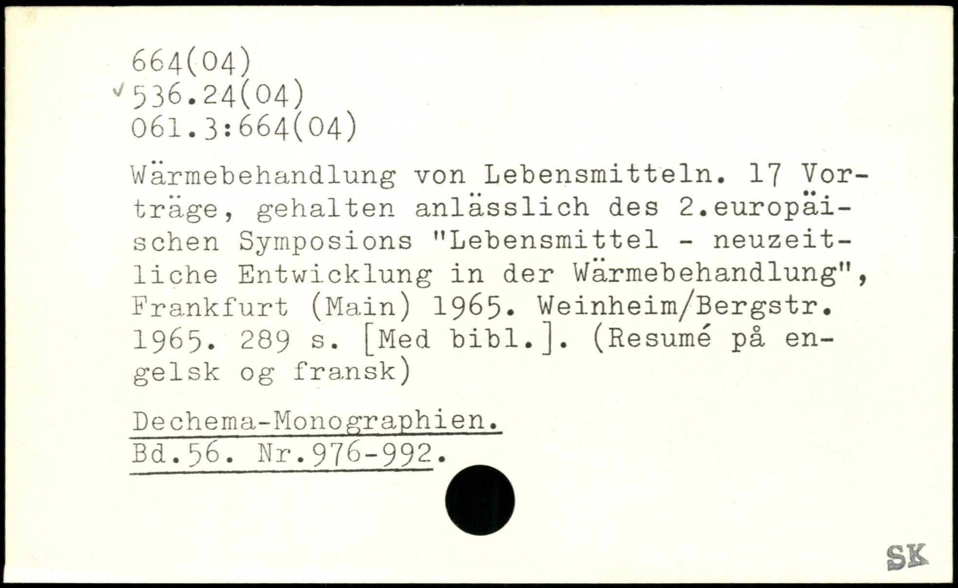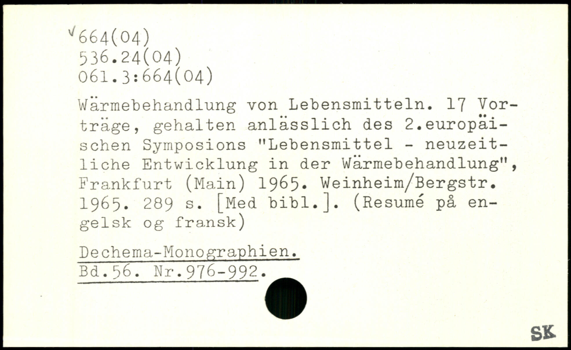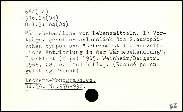 Wärmebehandlung von Lebensmitteln. 17 Vorträge, gehalten anlässlich des 2.europäischen Symposions "Lebensmittel - neuzeitliche Entwicklung in der Wärmebehandlung", Frankfurt (Main) 1965. Weinheim/Bergstr. 1965.
