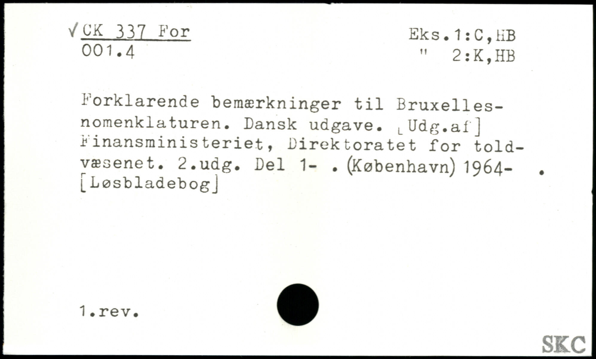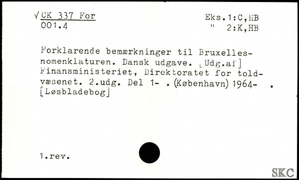 Forklarende bemærkninger til Bruxelles-nomenklaturen. Dansk udgave. LUdg.af] Finansrainisteriet, Direktoratet for toldvæsenet.