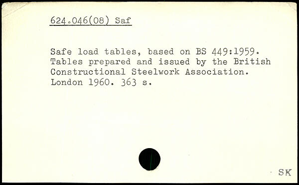 Safe load tables, based on BS 44951959-Tables prepared and issued by the British Constructional Steelwork Association.