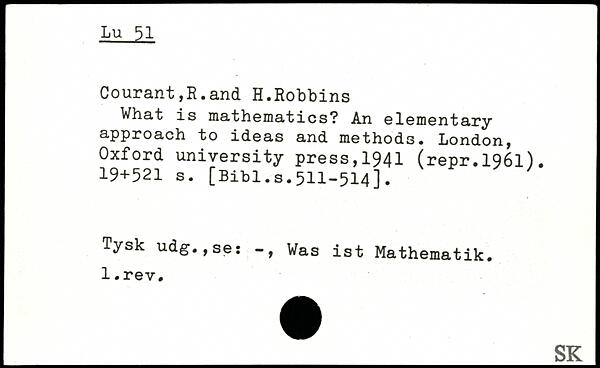 Courant,R.and H.Robbins What is mathematics? An elementary approach to ideas and methods.