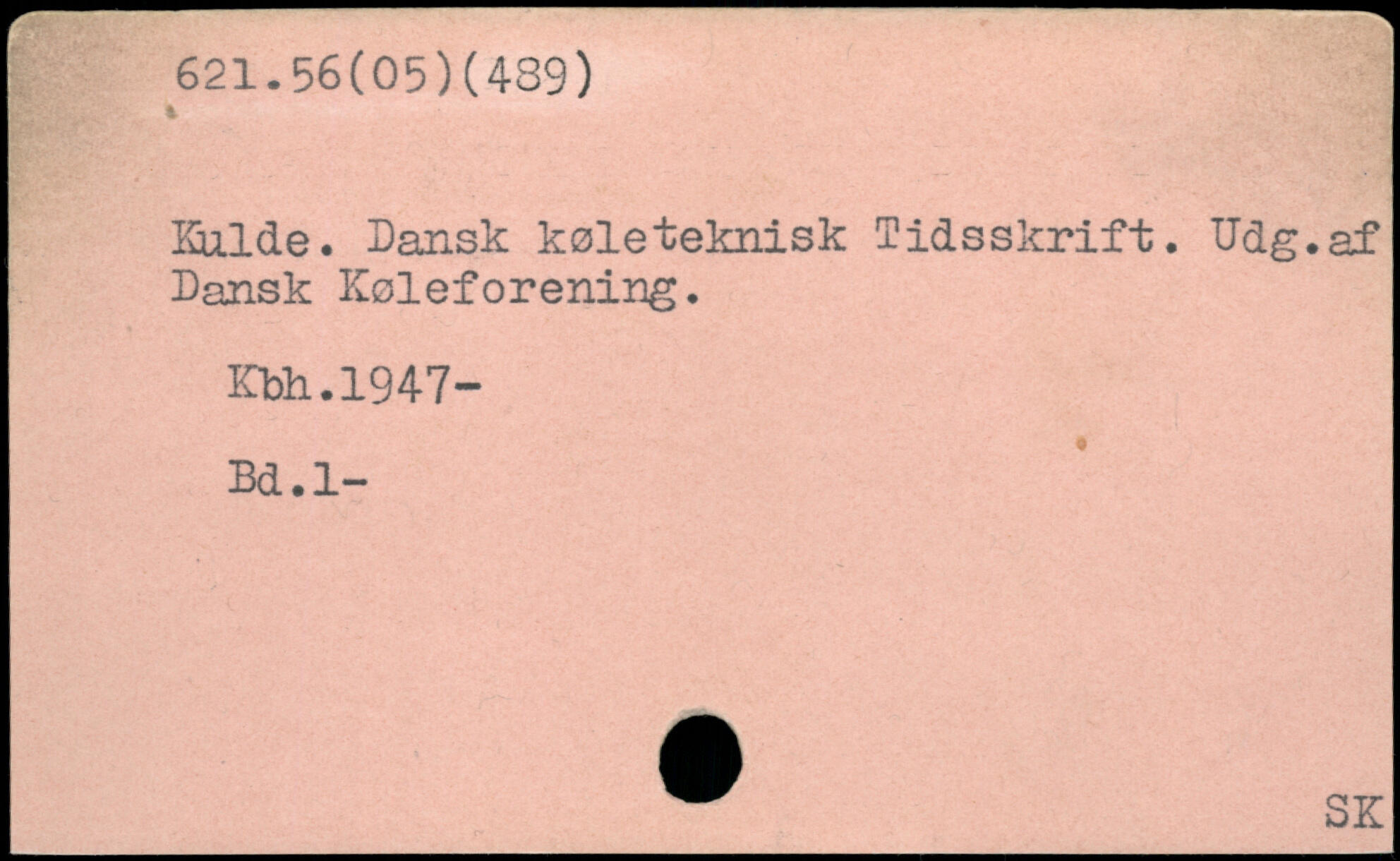 Kulde. Dansk køleteknisk Tidsskrift. Udg.af Dansk Køleforenirig. Kbh.1947- Bd.l- w SK