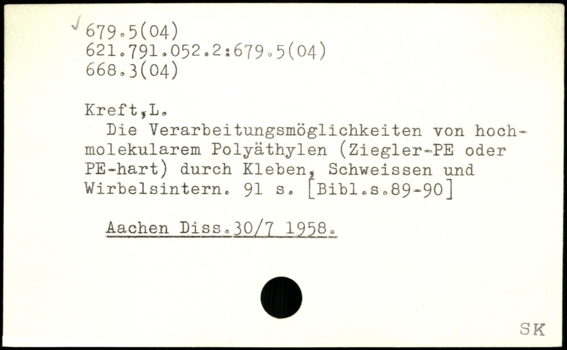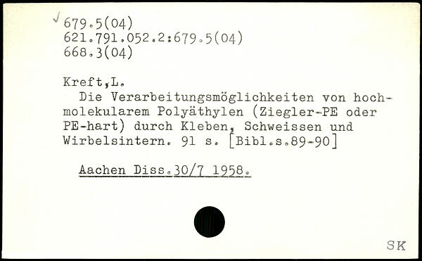 Die Verarbeitungsmöglichkeiten von hochmolekularem Polyäthylen (Ziegler-PE oder PE-hart) durch Kleben, Schweissen und Wirbelsintern