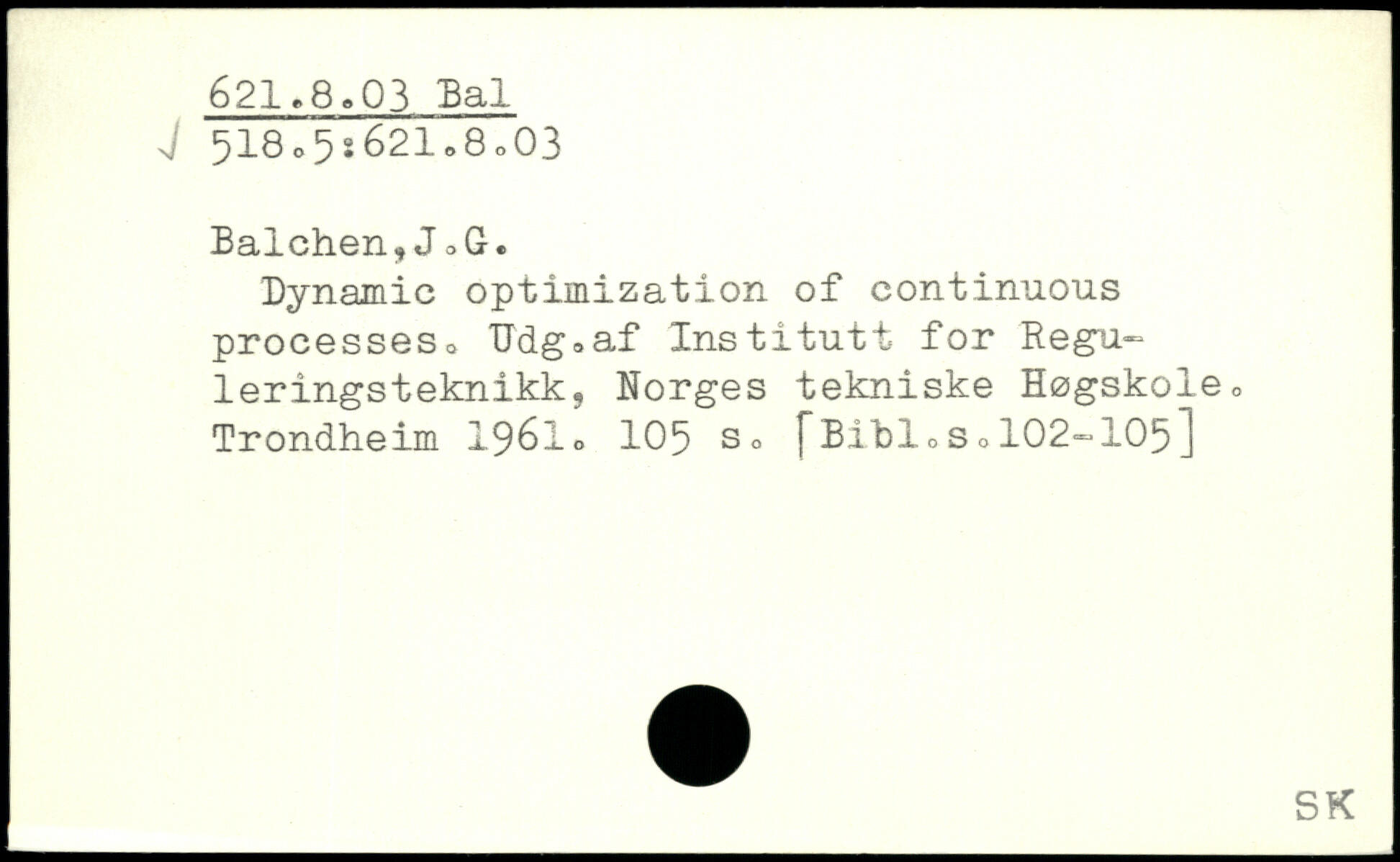 Dynamic optimization of continuous processes, TJdg,af Institutt for Regu-leringsteknikk, Norges tekniske Hogskole