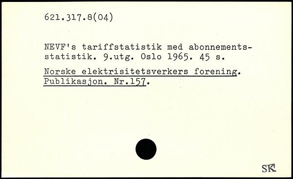 NEVF’s tariffstatistik med abonnementsstatistik. 9.utg. Oslo 1965.