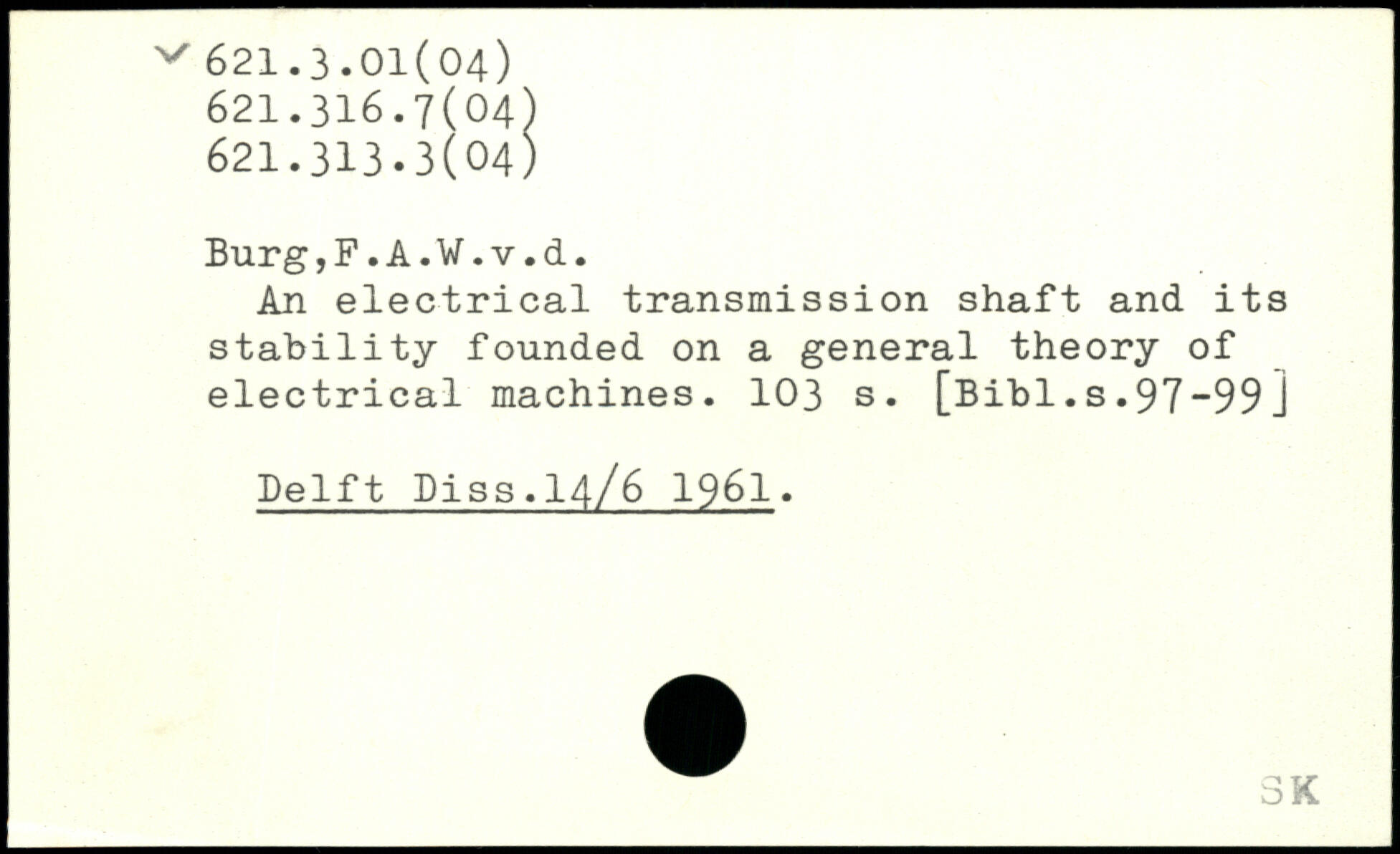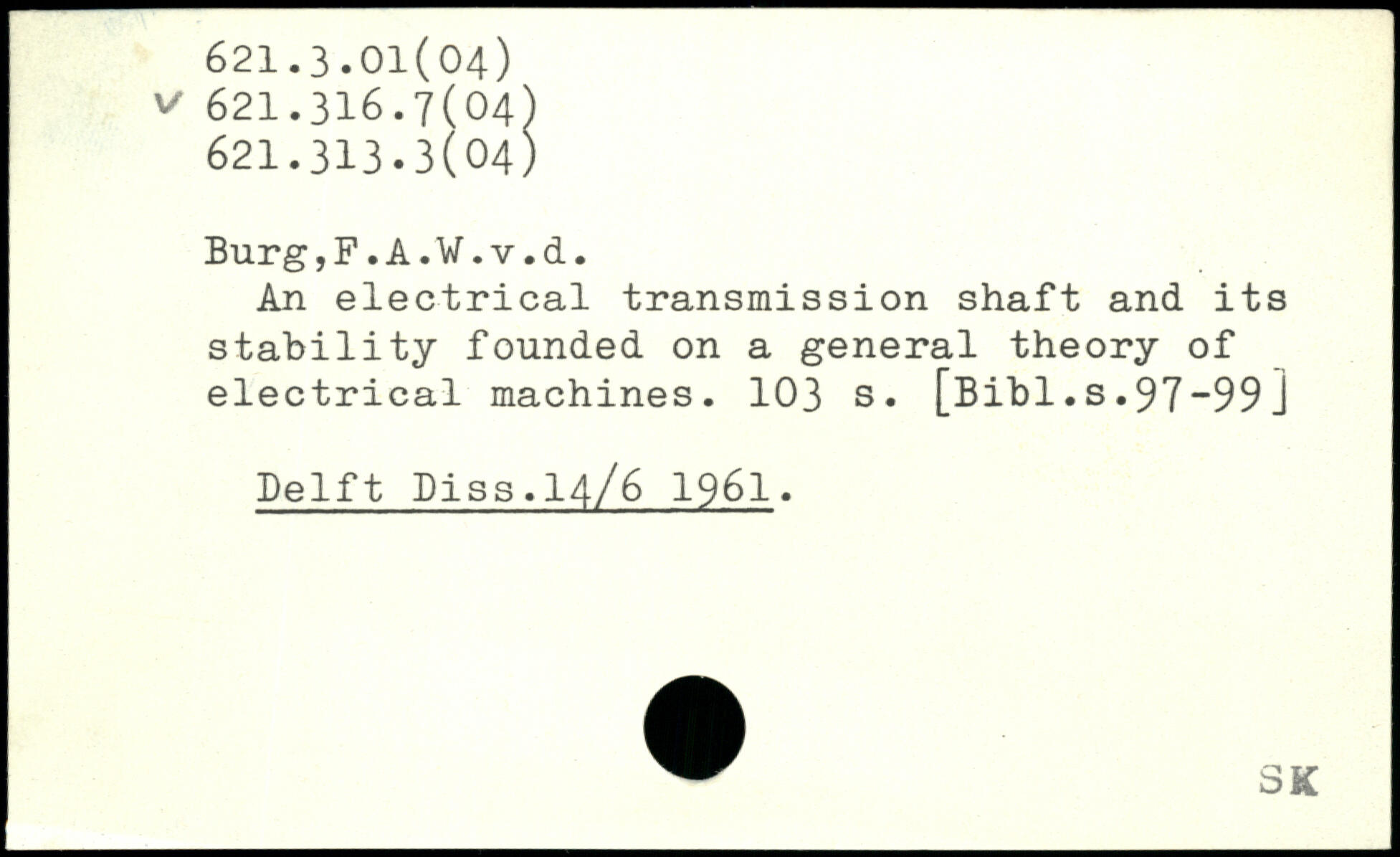An electrical transmission shaft and its stability founded on a general theory of electrical machines.