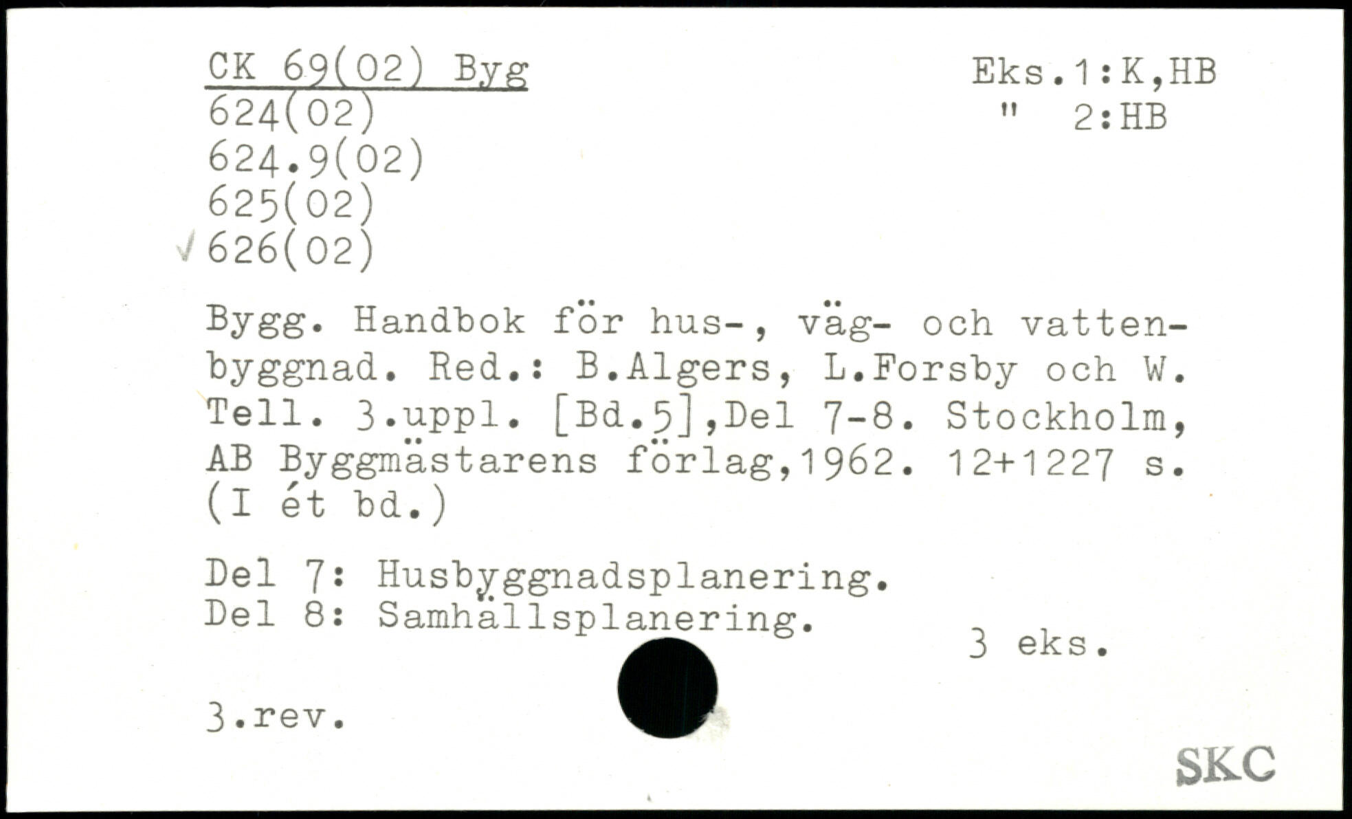 Bygg. Handbok för hus-, väg- och vattenbyggnad. Red.: B.Algers, L.Forsby och W. Tell. 3,uppl. [