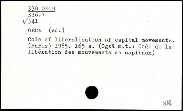 Code of libéralisation of capital movements. (Paris) 1965. Ié