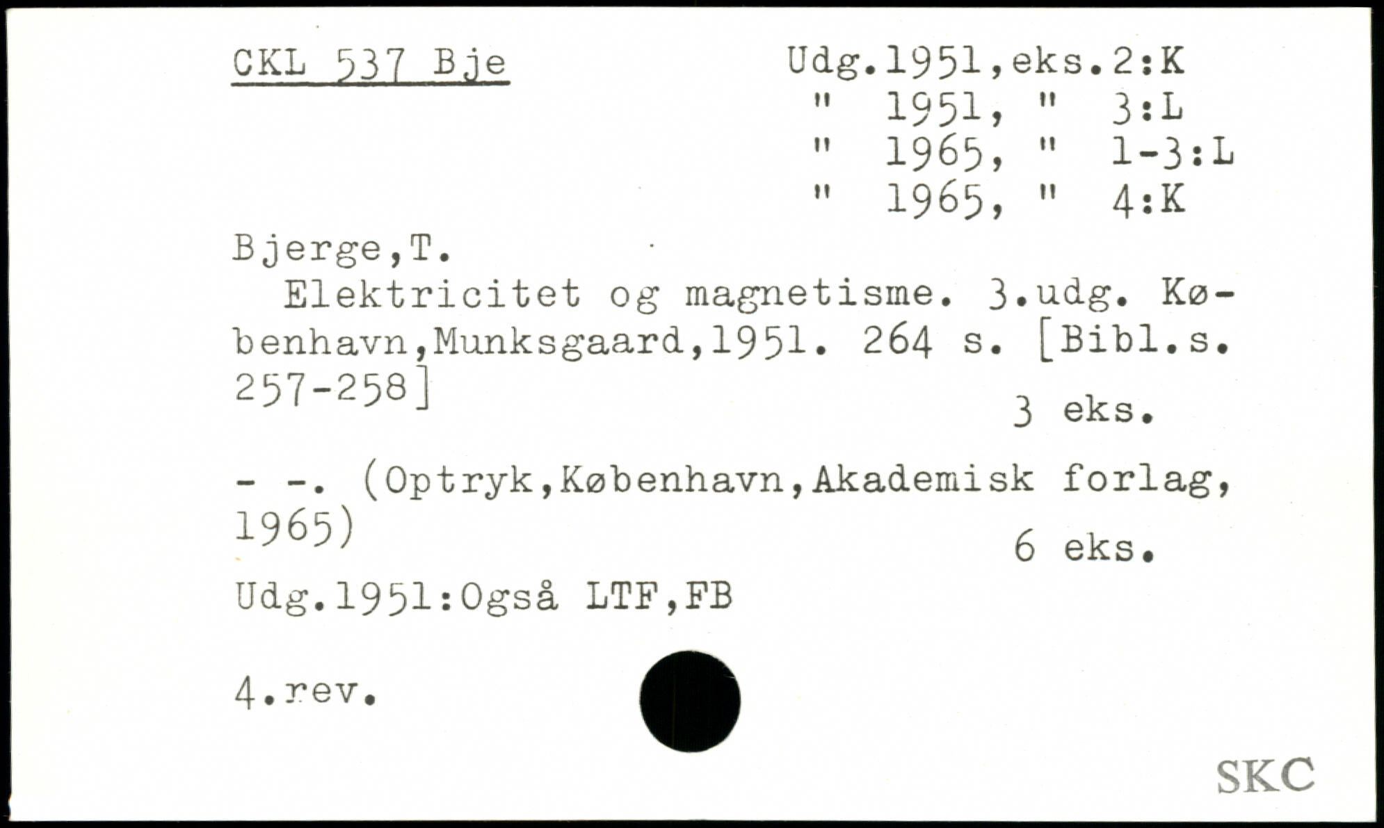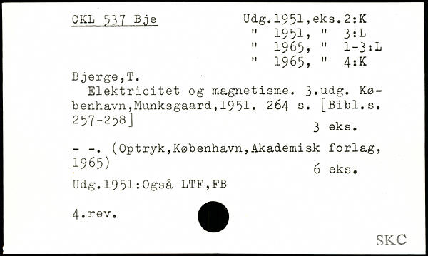 " 1951, " 3:L " 1965, " 1-3:L M 1965, , 4:K Bjerge,T. Elektricitet og magnetisme. 3,udg.