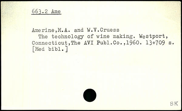 The technology of wine making. Westport, Connecticut,The AVI Publ.Co.,1960.