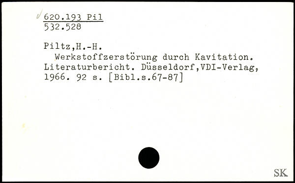 Werkstoffzerstörung durch Kavitation. Literaturbericht.