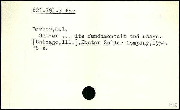 Solder ... its fundamentals and usage, fChicago,111.],Kester Solder Company,1954.