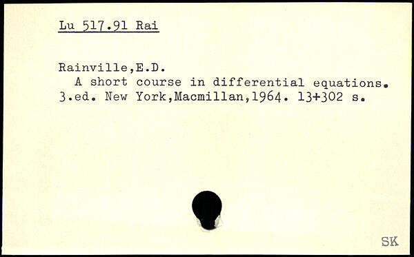 A short course in differential equations.