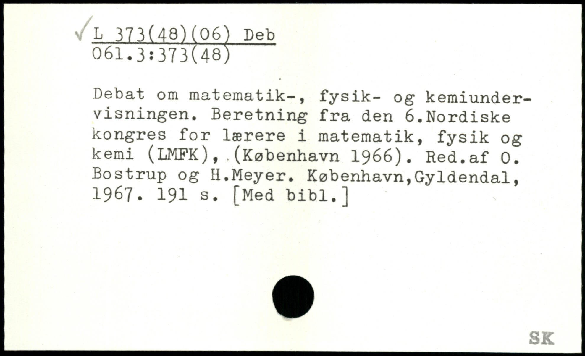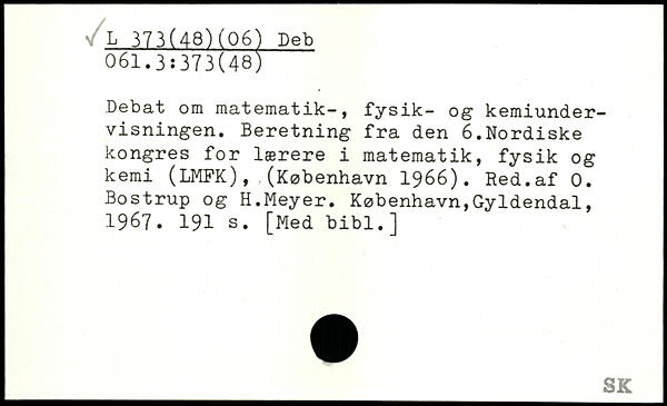 Debat om matematik-, fysik- og kemiundervisningen. Beretning fra den 6.Nordiske kongres for lærere i matematik, fysik og kemi (LMFK), (