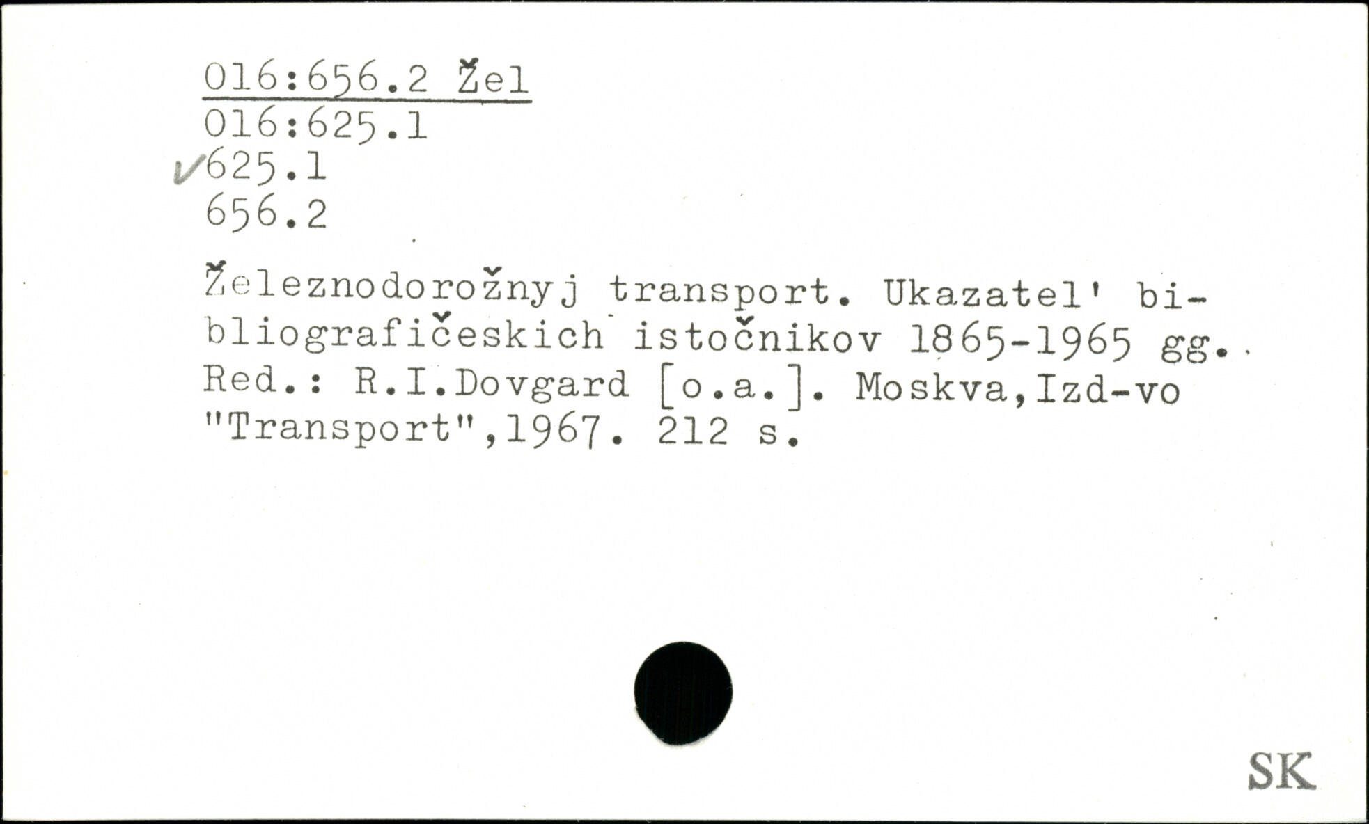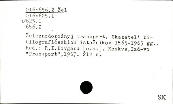 2eleznodoroznyj transport. Ukazatel' bi-bliograficeskich" istocnikov 1865-1965 gg.. Red..: R.I.Dovgard [o.a.]. Moskva, Izd-vo "Transport",1967.