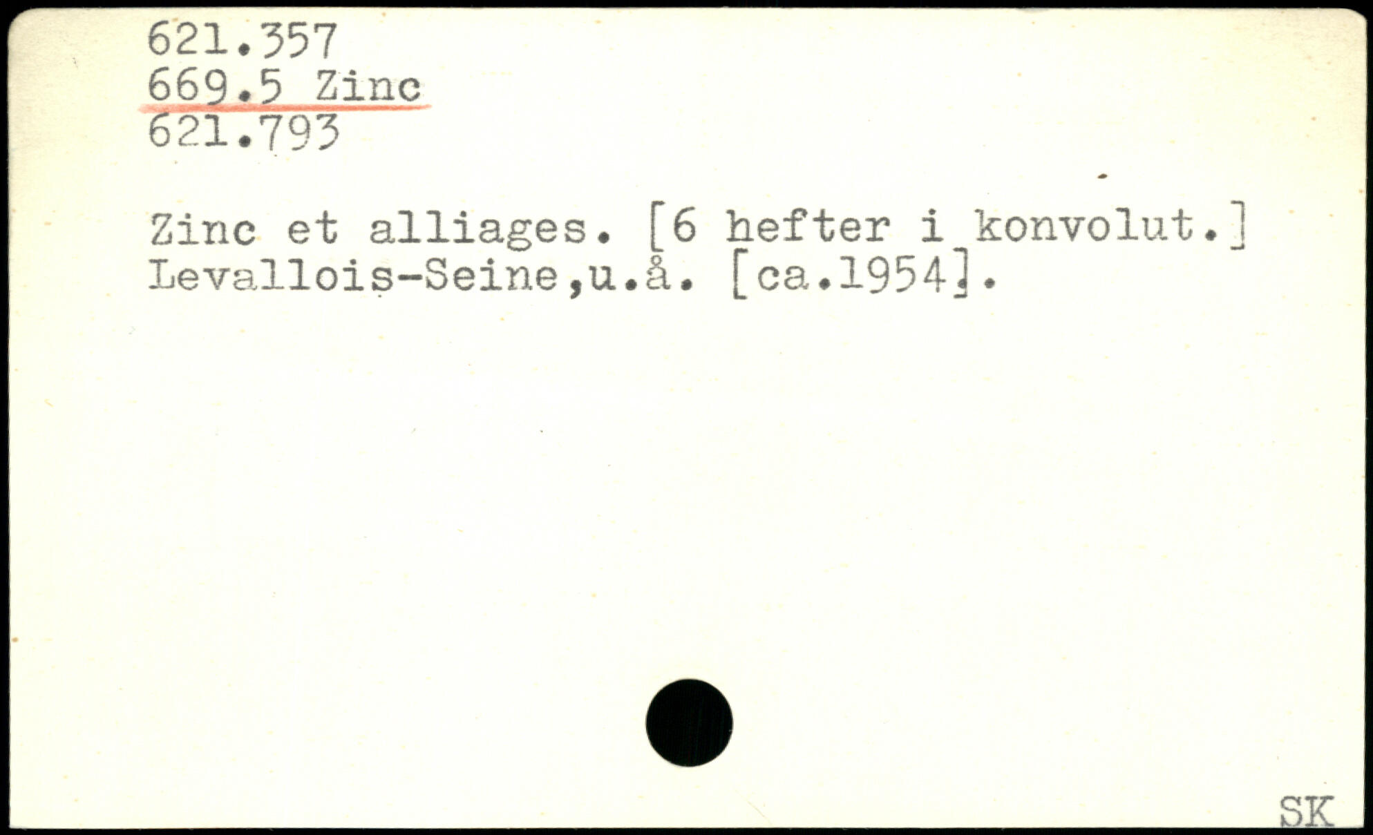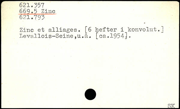 Zinc et alliages. [6 hefter i konvolut.] Levallois-Seine,u.â. [ca.1954].
