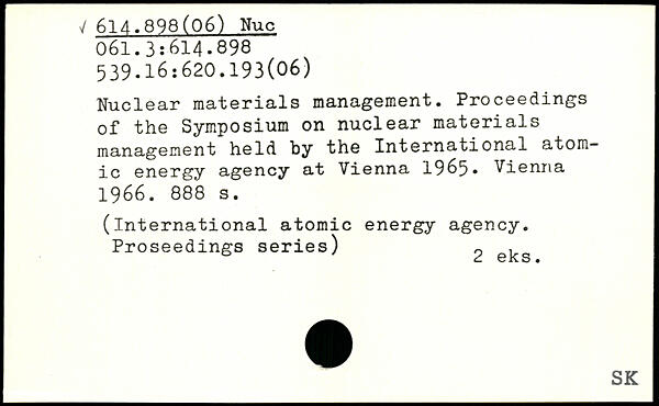 Nuclear materials management. Proceedings of the Symposium on nuclear materials management held by the International atomic energy agency at Vienna 1965. Vienna 1966.