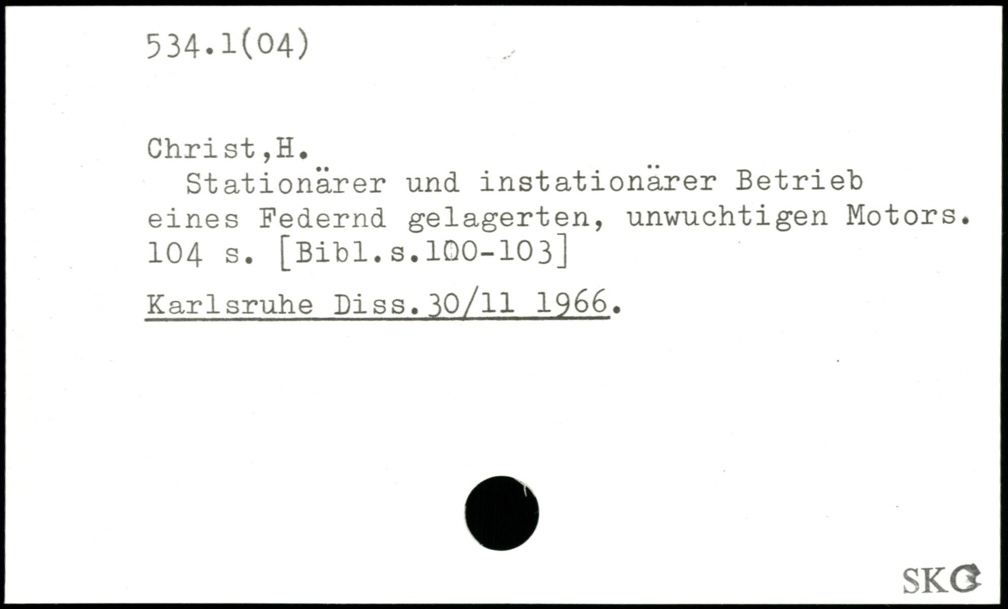 Stationärer und instationarer Betrieb eines Federnd gelagerten, unwuchtigen Motors.