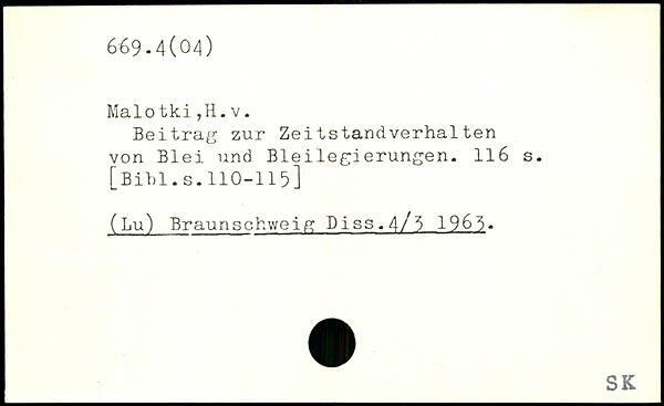 Beitrag zur Zeitstandverhalten von Blei und Bleilegierungen.