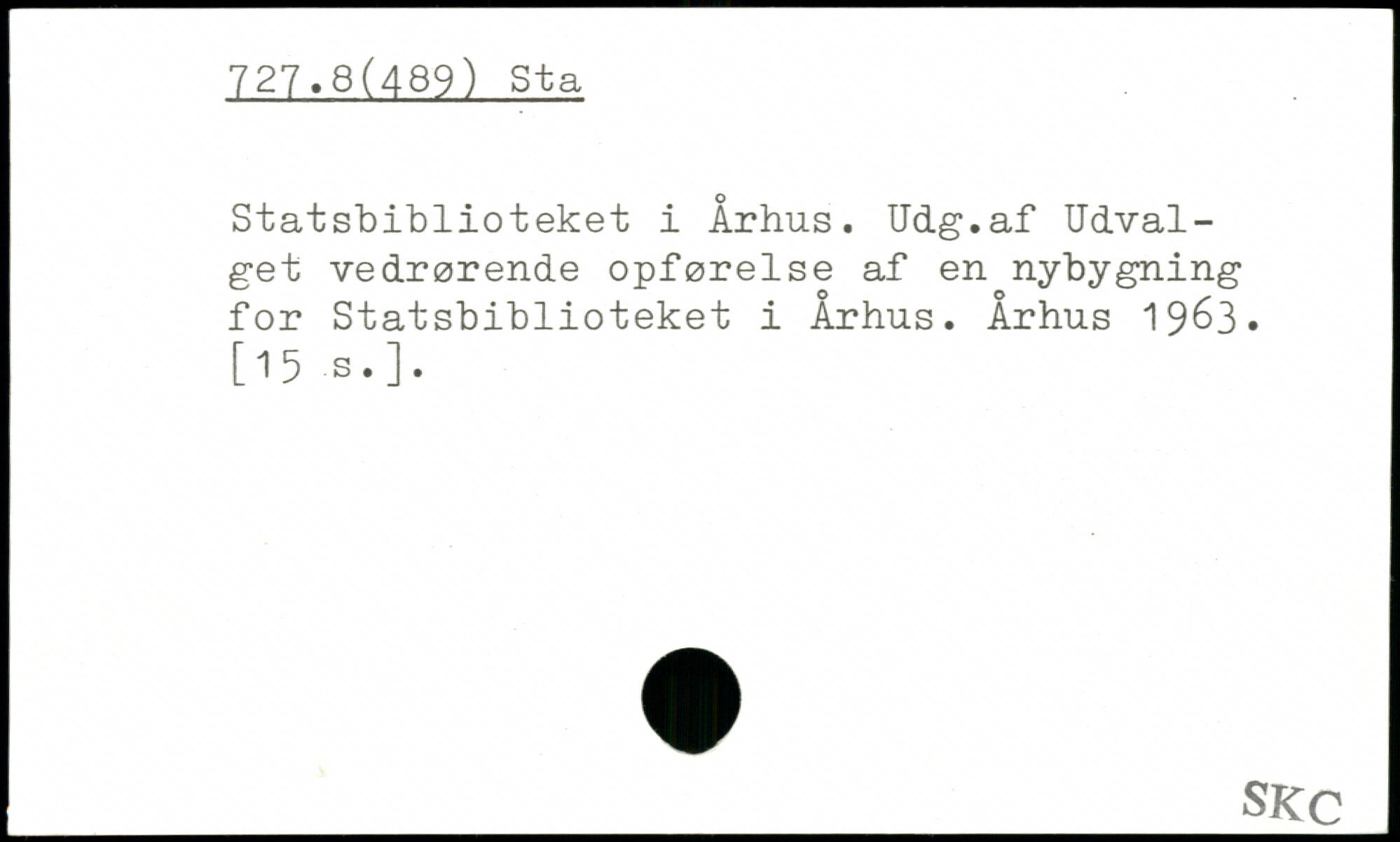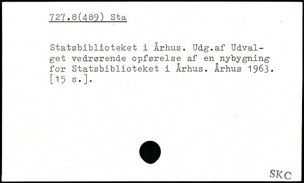 Statsbiblioteket i Århus. Udg.af Udvalget vedrørende opførelse af en nybygning for Statsbiblioteket i Århus. Århus 19&3. [