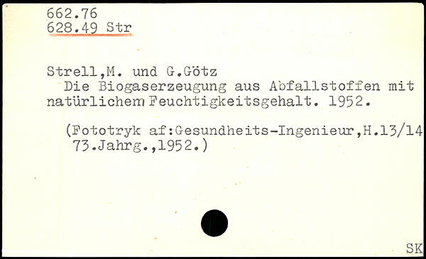 Die Biogaserzeugung aus Abfallstoffen mit natürlichem Feuchtigkeitsgehalt. 1952.