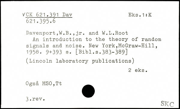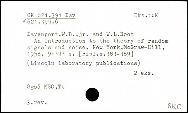 Davenport,W.B.,jr. and W.L.Root An introduction to the theory of random signals and noise.