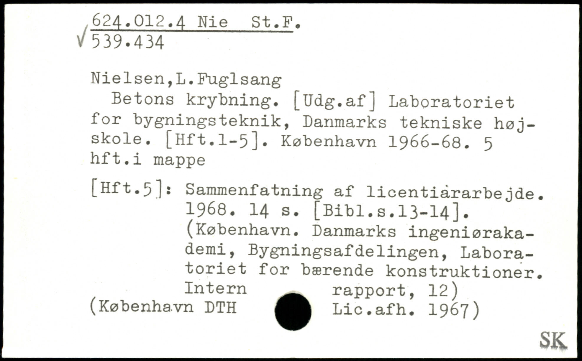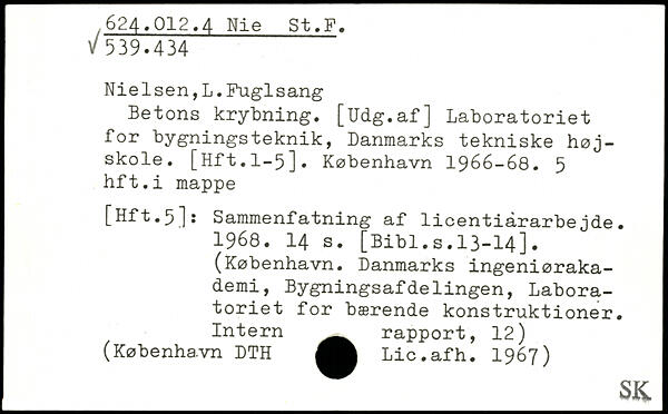 Nielsen,L.Fuglsang Betons krybning. [Udg.af] Laboratoriet for bygningsteknik, Danmarks tekniske højskole. [Hft.1-5].