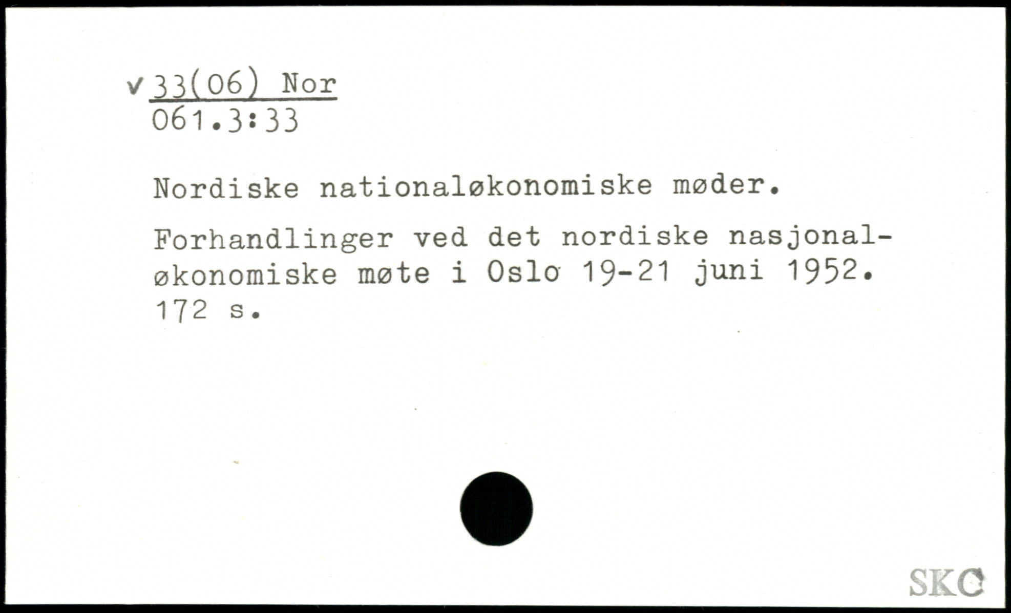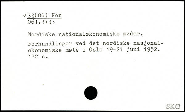 Nordiske nationaløkonomiske møder. Forhandlinger ved det nordiske nasjonal-økonomiske møte i Oslo 19-21 juni 1952.
