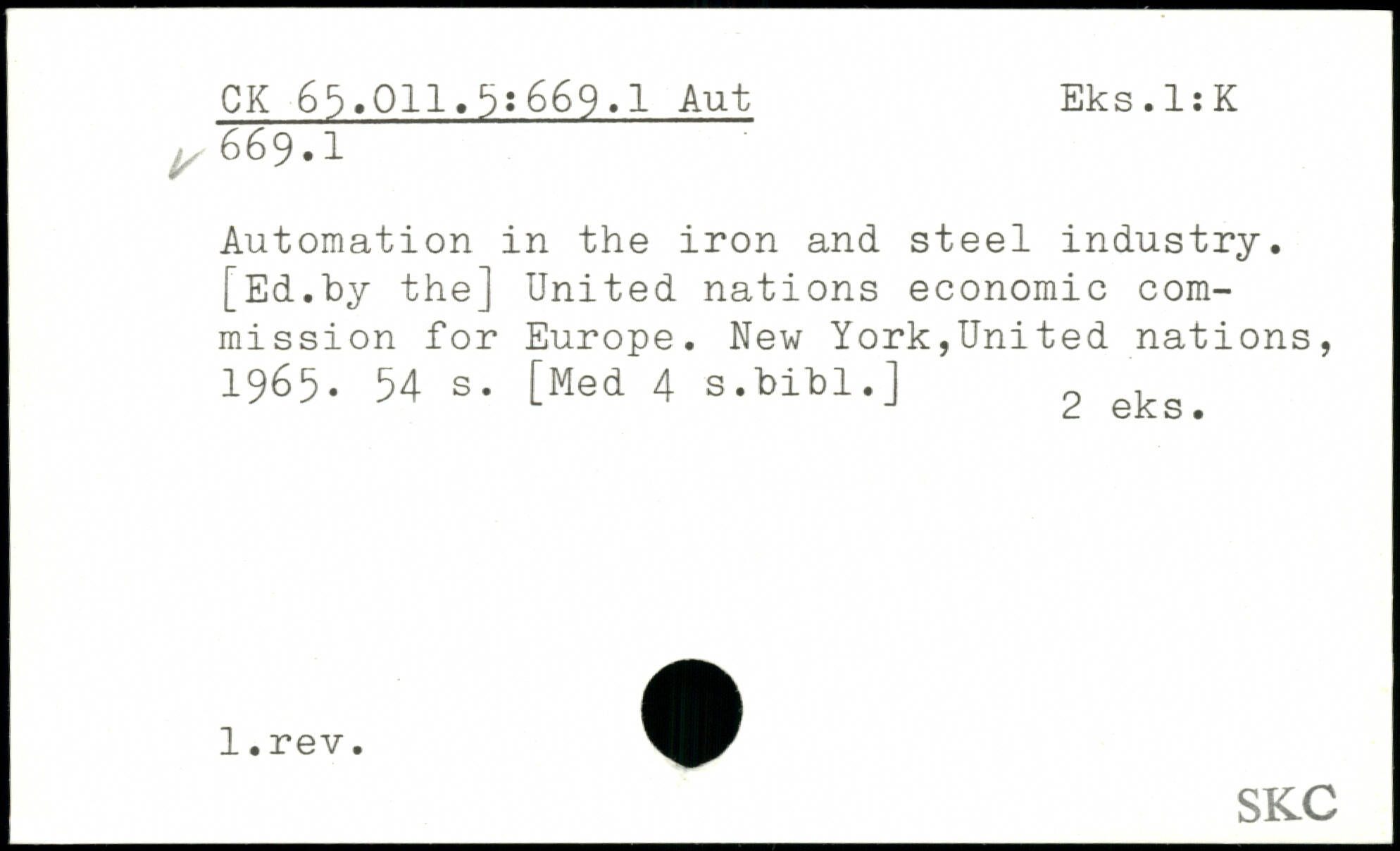 Automation in the iron and steel industry. [Ed.by the] United nations economic commission for Europe.