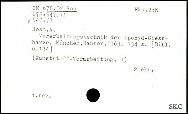Verarbeitungstechnik der Epoxyd-Giess-harze.