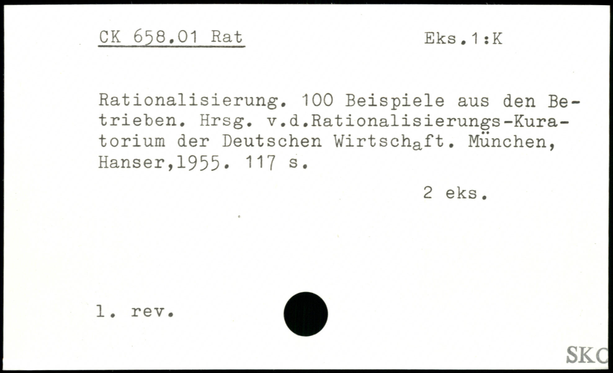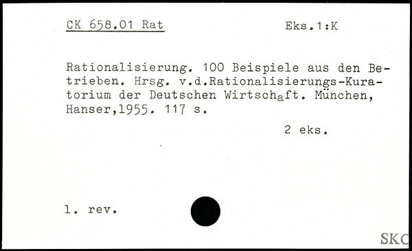 Rationalisierung. 100 Beispiele aus den Betrieben. Hrsg. v.d.Rationalisierungs-Kuratorium der Deutschen Wirtschaft.