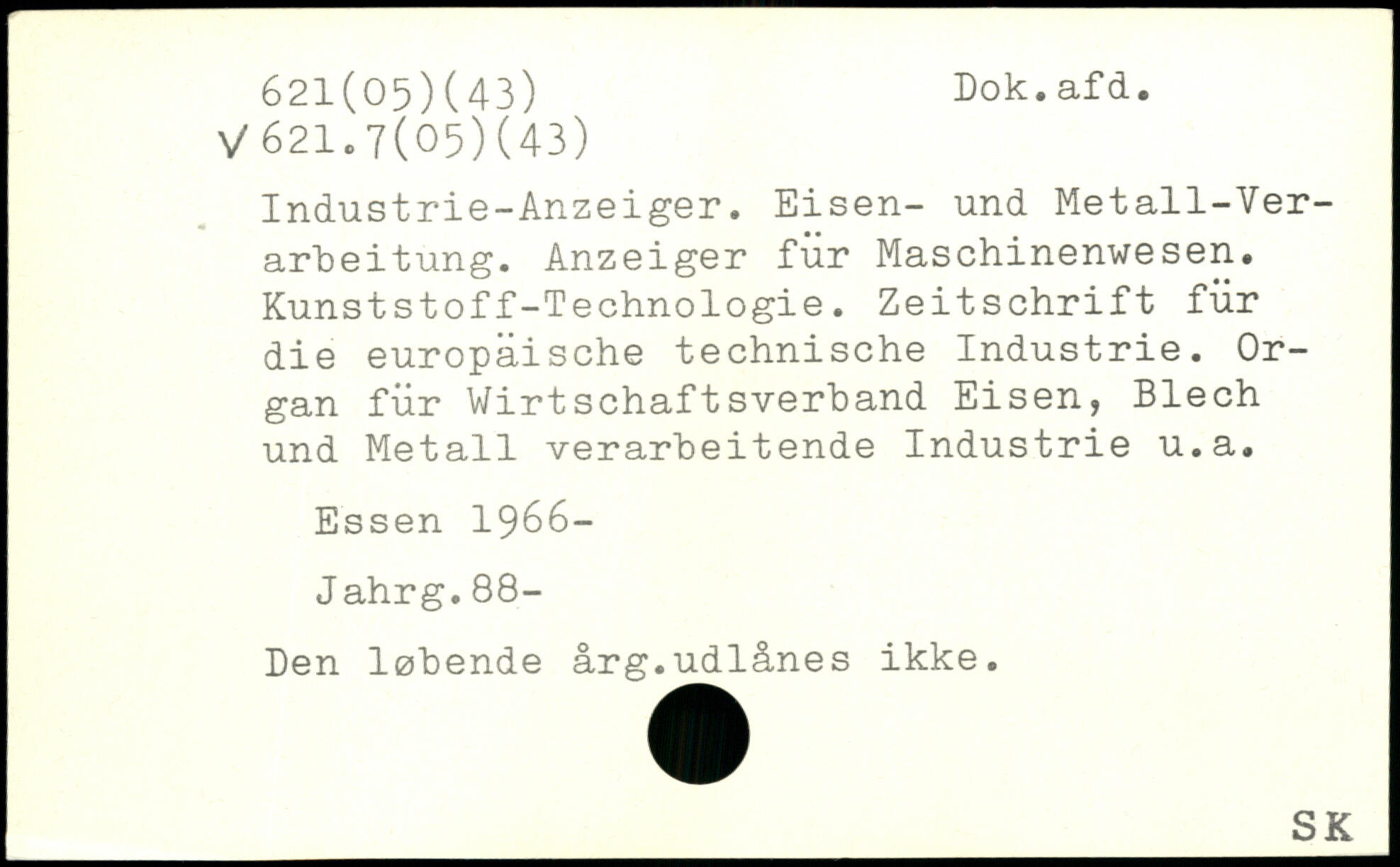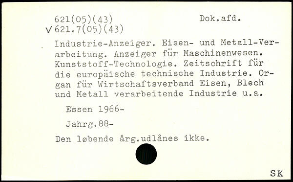 Industrie-Anzeiger. Eisen- und Metall-Verarbeitung. Anzeiger für Maschinenwesen. Kunststoff-Technologie. Zeitschrift für die europäische technische Industrie. Organ für Wirtschaftsverband Eisen, Blech und Metall verarbeitende Industrie u.a.