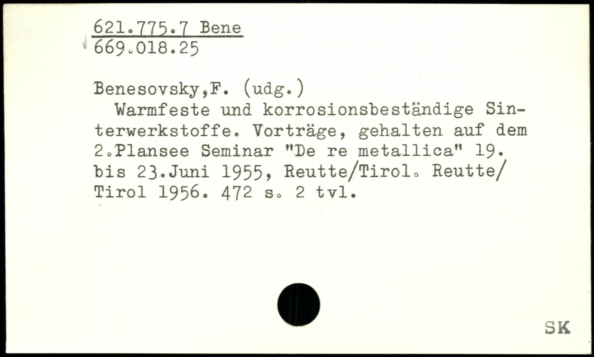 Varmfeste und korrosionsbeständige Sinterwerkstoffe. Vorträge, gehalten auf dem 20Plansee Seminar "Be re metallica" 19. "bis 2ß.Juni 1955, Reutte/Tirolo Reutte/ Tirol 1956.