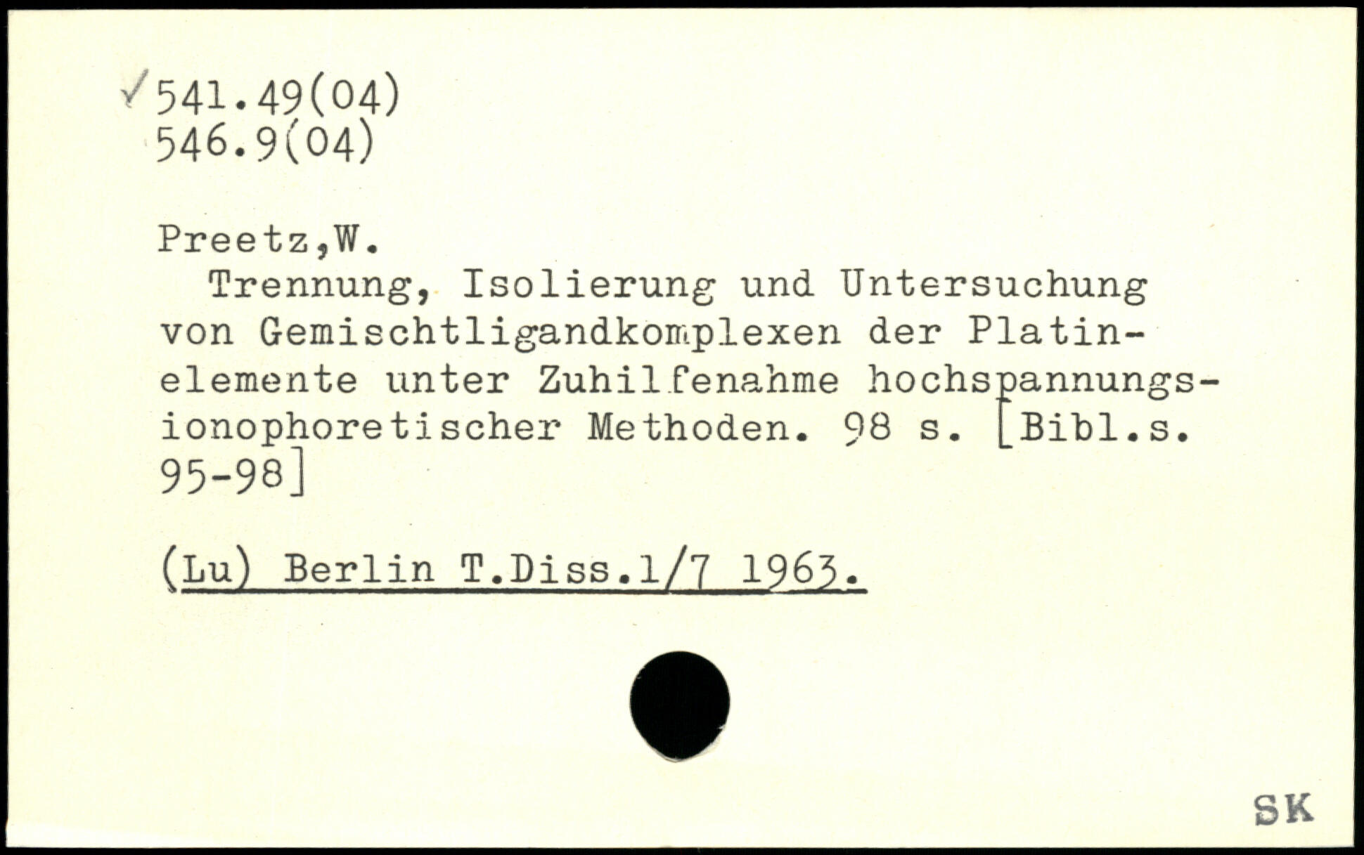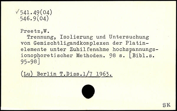 Trennung, Isolierung und Untersuchung von Gemischtligandkoir.plexen der Platinelemente unter Zuhilfenahme hochspannungs-ionophoretischer Methoden.