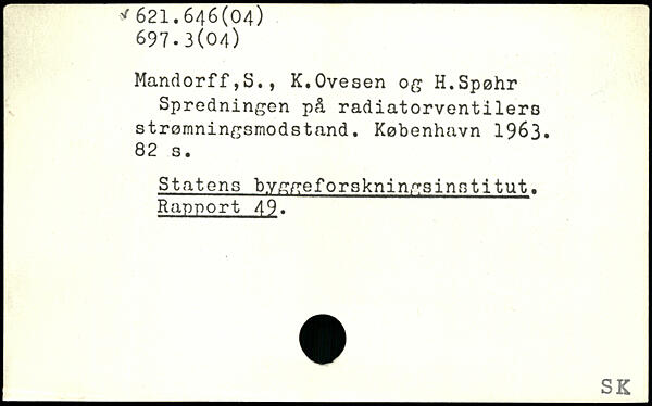 Mandorff,S., K.Ovesen o& H.Spøhr Spredningen på radiatorventilero strømnin^smodstand.