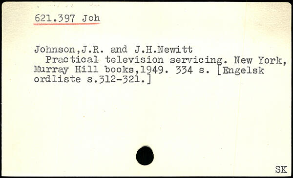 Johnson,J.R. and J.ÏÏ.Hewitt Practical television servicing.