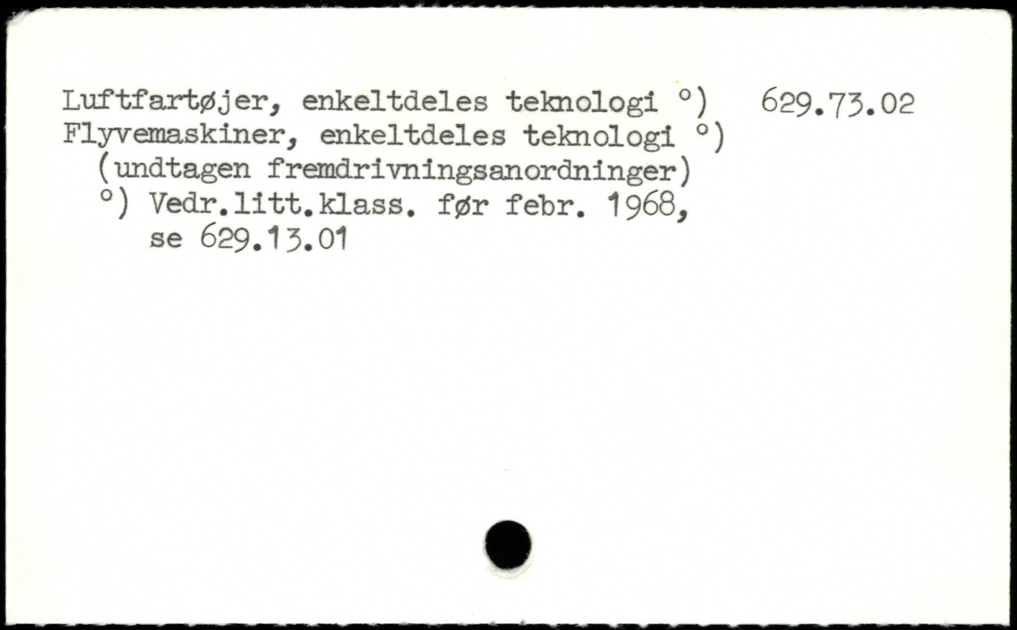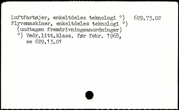 Luftfartøjer, enkeltdeles teknologi .) 629.73.02 Flyvemaskiner, enkeltdeles teknologi .)