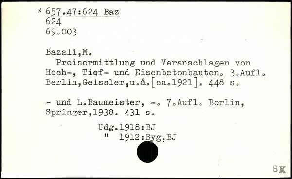 Preisermittlung und Veranschlagen von Hoch-, Tief- und Eisenbetonbauten. 3oAufl. Berlin,Geissler,u.a.[ca.1921].
