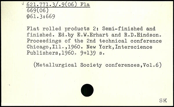 Flat rolled products 2: Semi-finished and j finished. Ed.by EoV.Erhart and R.D.Hindson0 Proceedings of the 2nd technical conference Chicago,111,,1960.