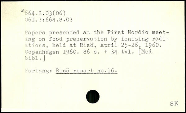 Papers presented at the First Nordic meet- ! mg on food preservation by ionizing radi-tions, held at Riso, April 25-26, 1960.