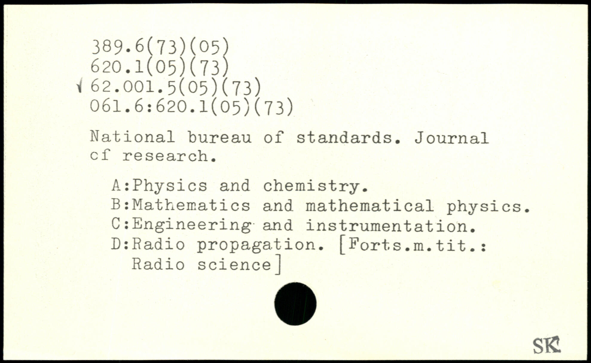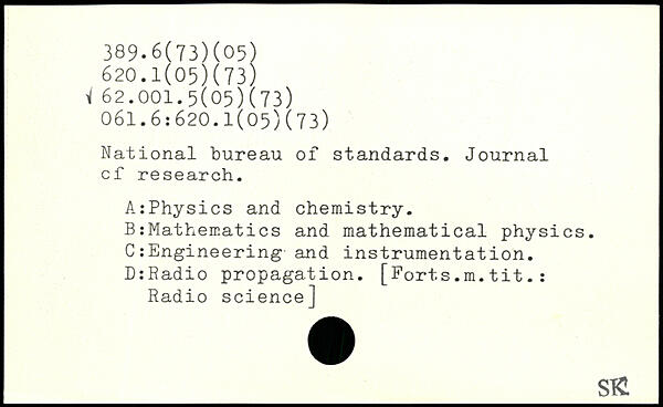 National bureau of standards. Journal cf research. A:Physics and chemistry. B:Mathematics and mathematical physics. C: Engineering and instrumentâtion. DtRadio propagation. [Forts.m.tit.: Radio science]