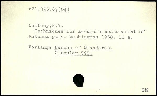 Cottony,HSV. Techniques for accurate measurement of antenna gain.