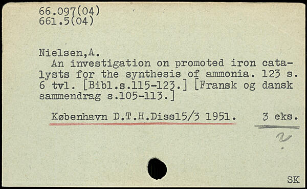 An investigation on promoted iron catalysts for the synthesis of ammonia.